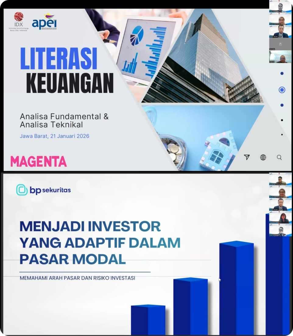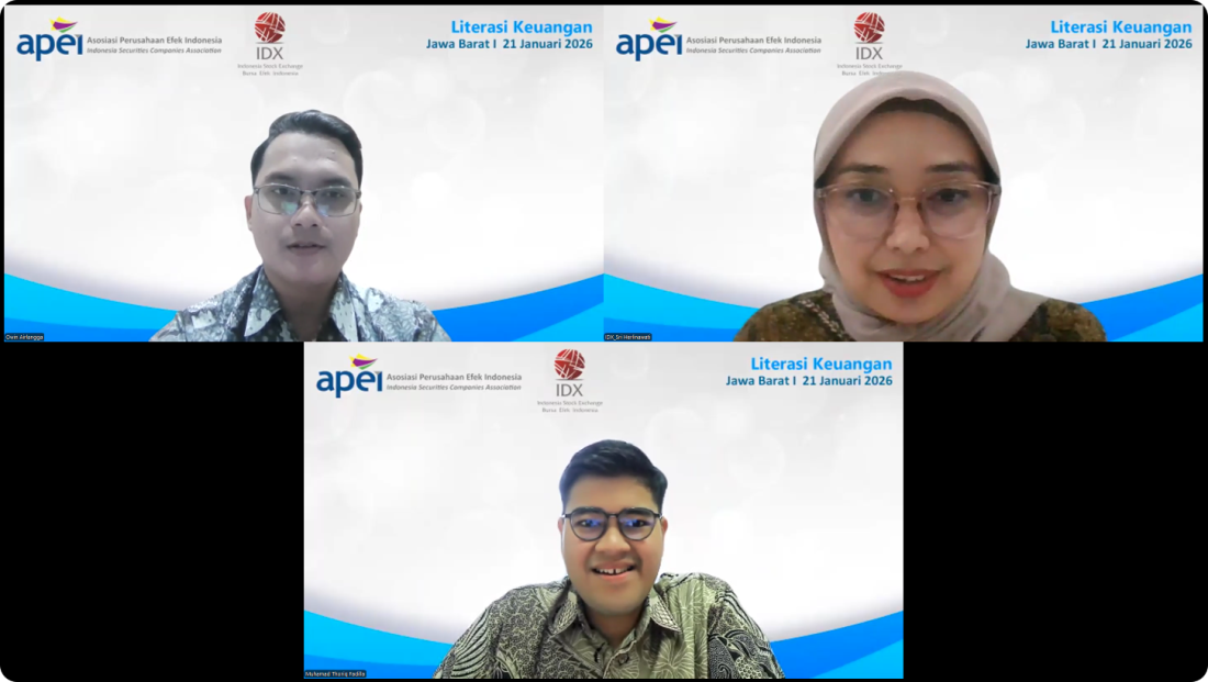 APEI bekerjasama dengan PT Bursa Efek Indonesia melalui Kantor Perwakilan BEI Jawa Barat menyelenggarakan kegiatan Literasi Keuangan Jawa Barat secara online pada tanggal 21 Januari 2026.